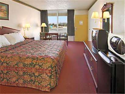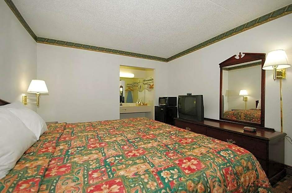 This room features a microwave, small refrigerator, and cable television.